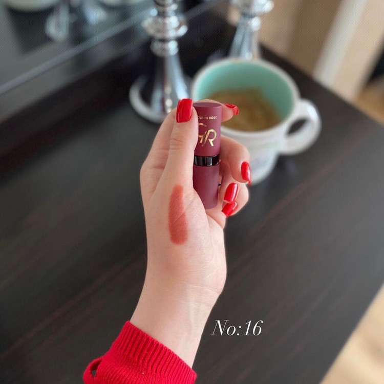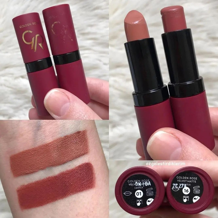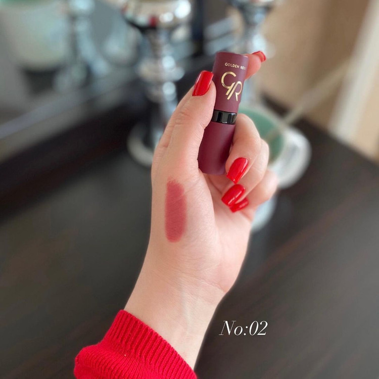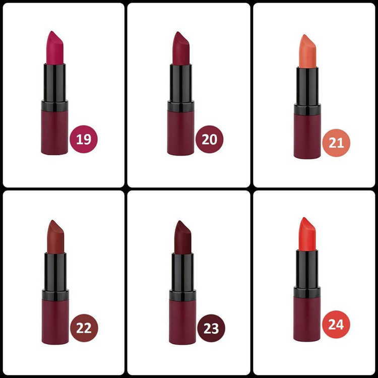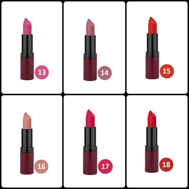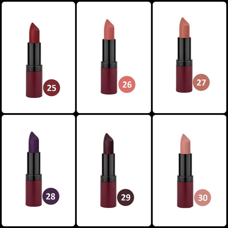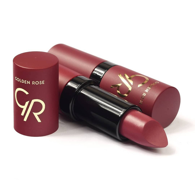 رژ لب جامد گلدن رز مدل Velvet Matte، تمام ویژگی های یک رژ لب مات را دارد. این رژ لب دارای غلظت رنگ بالا است که بعد از استفاده کردن جلوه ای مخملی به لب هایتان می بخشد. این رژ لب با ویتامین E ترکیب شده تا باعث چروک شدن پوست لب نشود و از آن در برابر آسیب های خارجی محافظت می کند. برخلاف خیلی از رژ لب های مات این محصول لب های شما را آبرسانی می کند و به هیچ عنوان پوست لبتان خشک نمی شود.