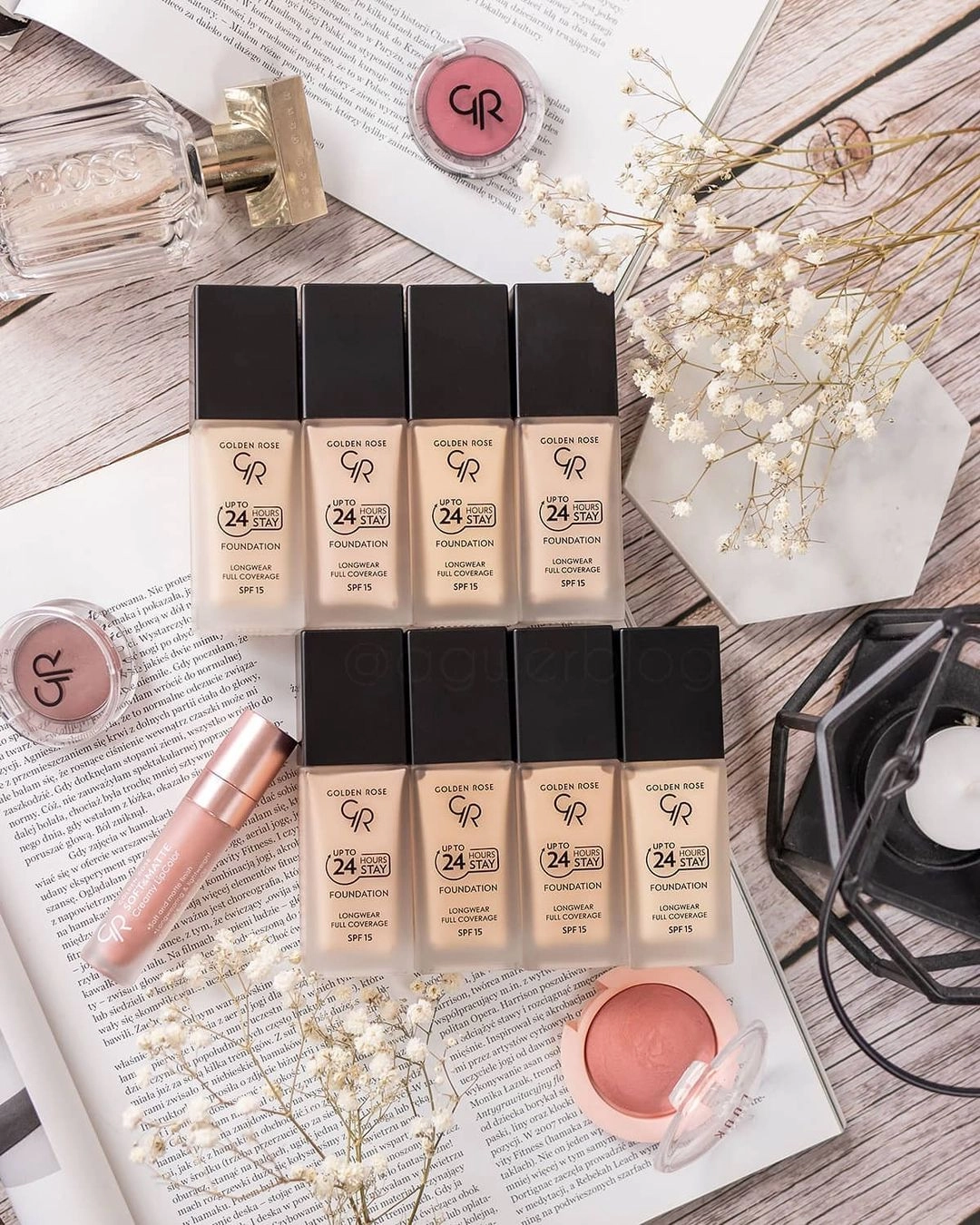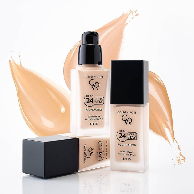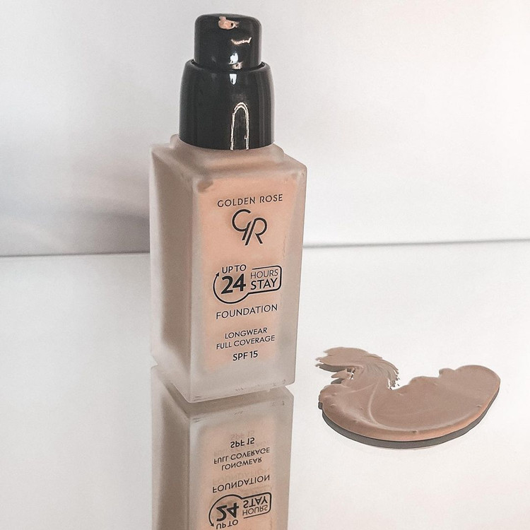کرم پودر 24 ساعته SPF15 گلدن رز Golden Rose یک کرم پودر بسیار سبک با پوشش دهی کامل است. این کرم پودر با فرمولاسیون ضد آب خود تا 24 ساعت روی پوست دوام آورده و به هیچ عنوان موجب خشکی پوست نمی شود. این محصول خاصیت نرم کنندگی داشته و پوست صورت را شاداب و مرطوب نگه می دارد